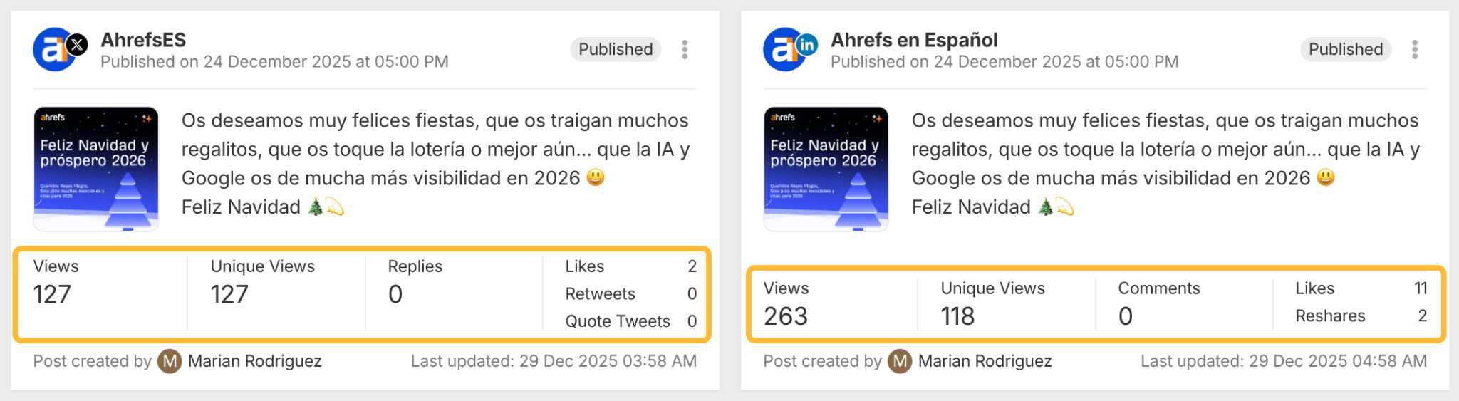 Vous pouvez désormais consulter les performances de vos publications directement dans Social Media Manager.