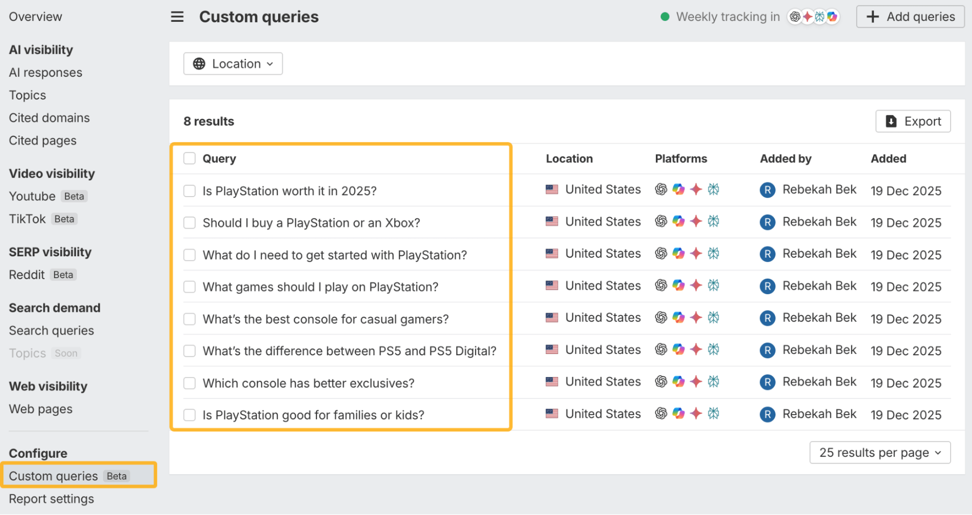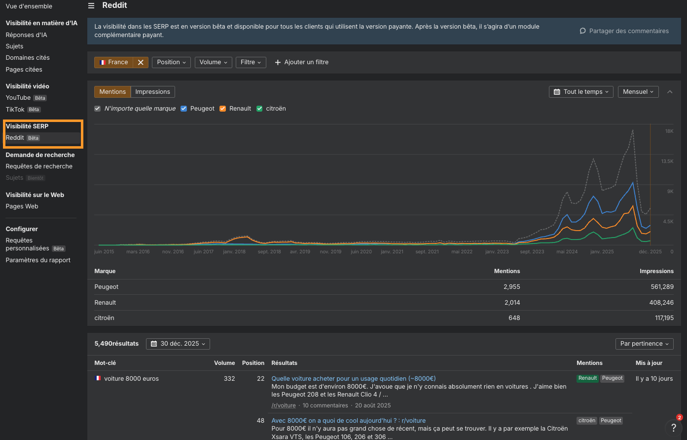 Suivez votre marque sur Reddit et TikTok, requêtes IA personnalisées, et plus encore (décembre 2025)