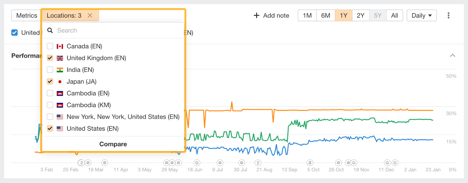 On a ajouté un mode Localisations qui te permet de suivre les performances selon différents emplacements dans tes projets.