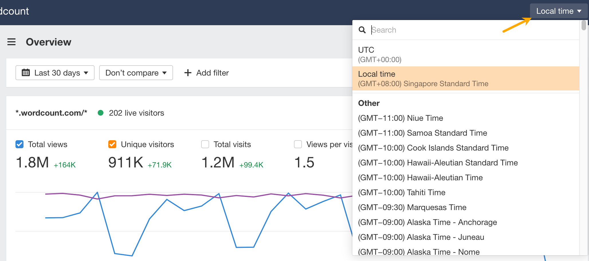 Clique sur « View More » dans n’importe quel widget pour l’agrandir et voir plus de métriques pertinentes en plus des stats de visiteurs.