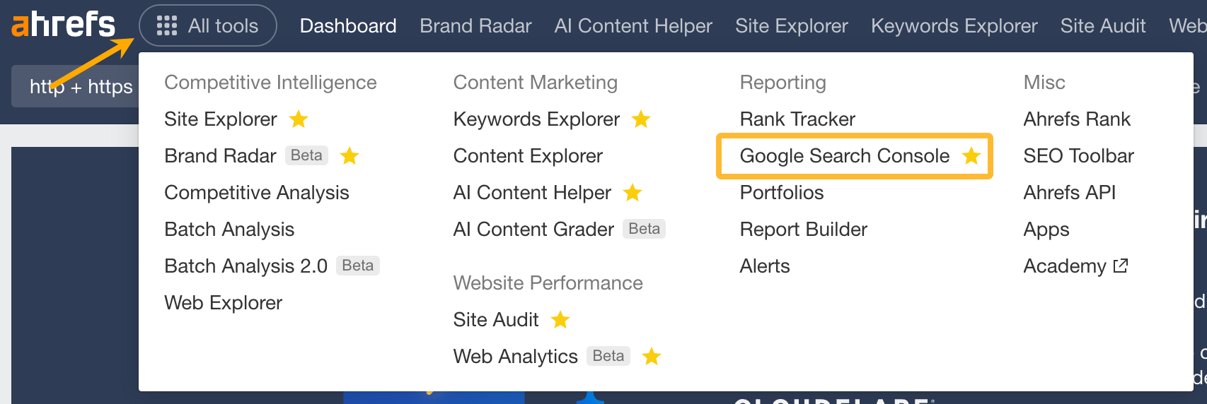 Note : Les rapports GSC disposent désormais de leur propre section dans le menu supérieur. Rendez-vous dans « Tous les outils » et ajoutez cette section à vos favoris pour un accès encore plus rapide.