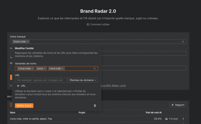 Concrètement, plus besoin de courir après chaque faute de frappe, variation orthographique ou formulation alternative, vous obtenez une vue plus propre et consolidée de la visibilité de votre marque.