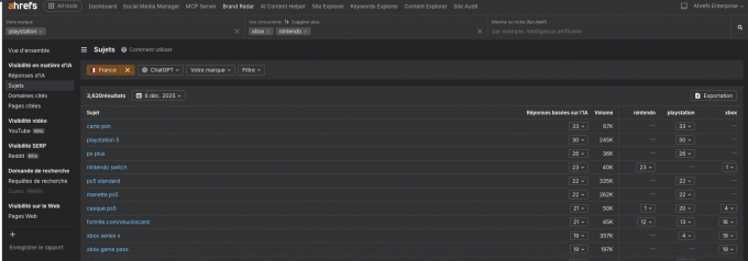 - Découvrir de nouveaux angles où votre marque est (ou n’est pas) visible dans l’IA