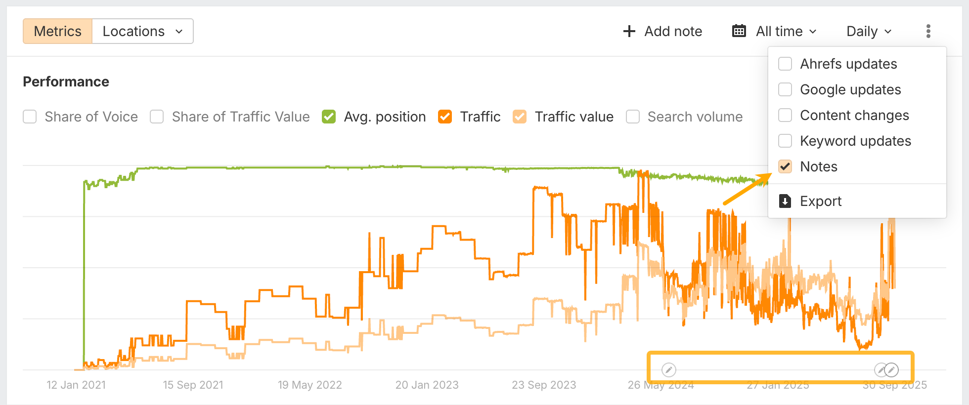Les notes utilisateur dans Rank Tracker et les graphiques GSC sont désormais partagés pour tout l’espace de travail.