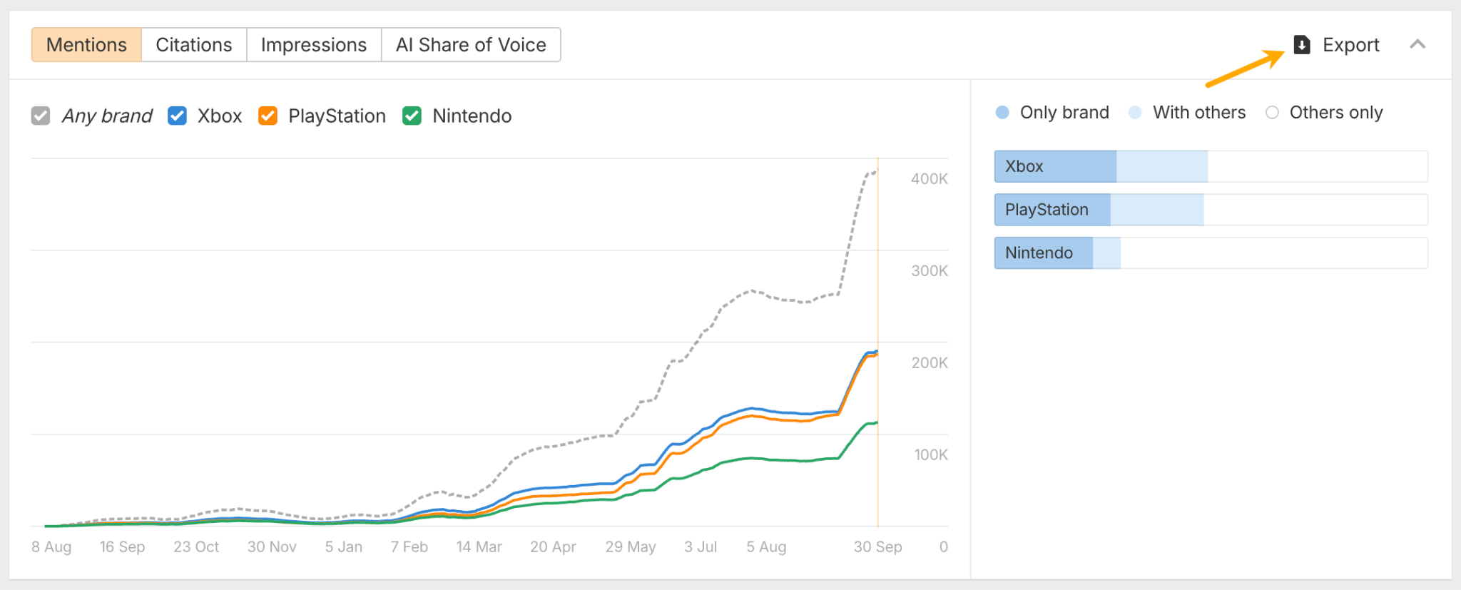 - Télécharger n’importe quel graphique Brand Radar chart en fichier CSV