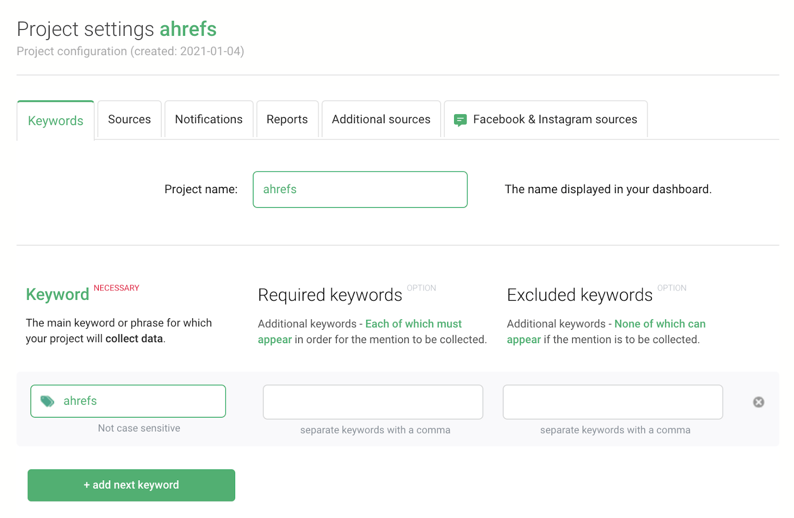 Brand24 est organisée autour de projets avec des mots-clés que vous voulez suivre. Ces mentions de mots-clés peuvent ensuite être segmentées, filtrées et analysées pour obtenir des informations intéressantes. Il va évidemment falloir suivre les mentions de votre propre marque ou produits. Mais nous sommes là pour parler de la concurrence.