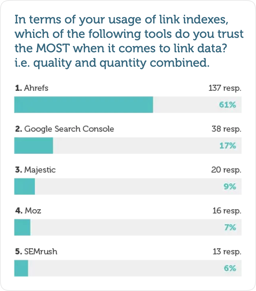 C’est sans doute pour cela que les professionnels du SEO votent constamment pour Ahrefs comme outil de link building favori, comme dans le rapport de 2021 de State of Link Building de Aira.