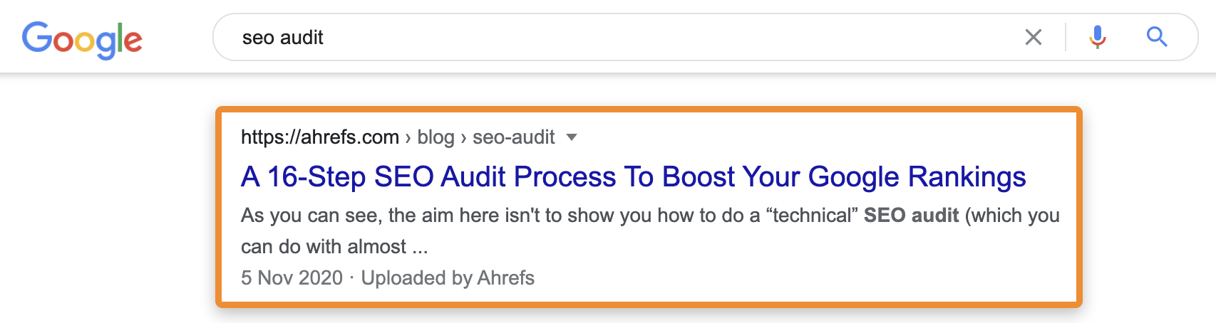 Dans Google, la plupart des résultats organiques ressemblent à cela :