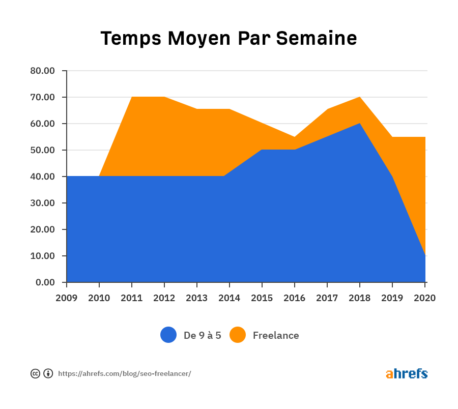 Vous ne savez pas quel tarif appliquer ? En 2018 Ahrefs a fait une enquête mondiale dans le milieu du SEO qui a révélé que la moyenne était d’environ 100 à 150 dollars de l’heure. Si vous préférez établir des tarifs par projet ou par abonnement mensuel, vous pouvez consulter toute l’étude via le lien ci-dessous.