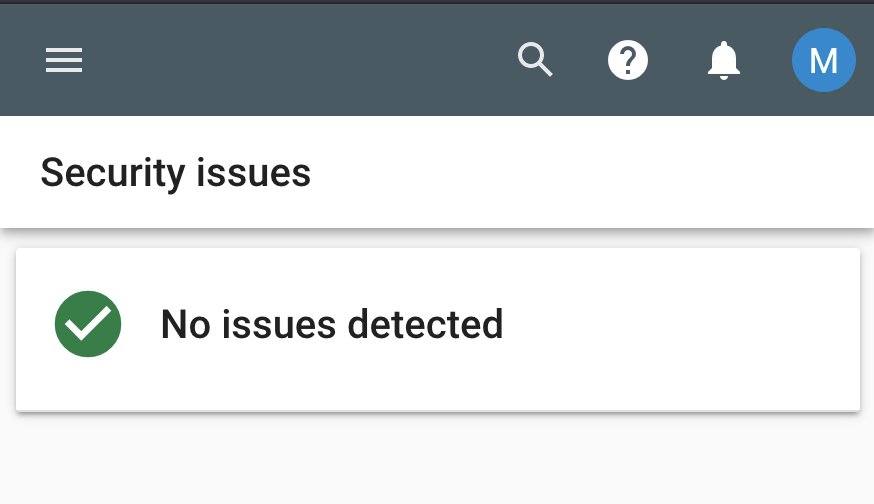 Mais si vous avez un doute, dirigez-vous vers l’onglet “problèmes de sécurité” dans le Google Search Console. Vous voulez voir ce genre d’écran :