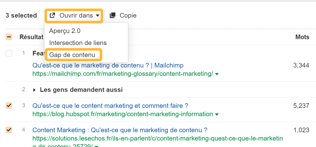 Et si vous optimisez une page déjà existante, incluez-la dans l’analyse pour voir les sous-thèmes que vous pourriez manquer.