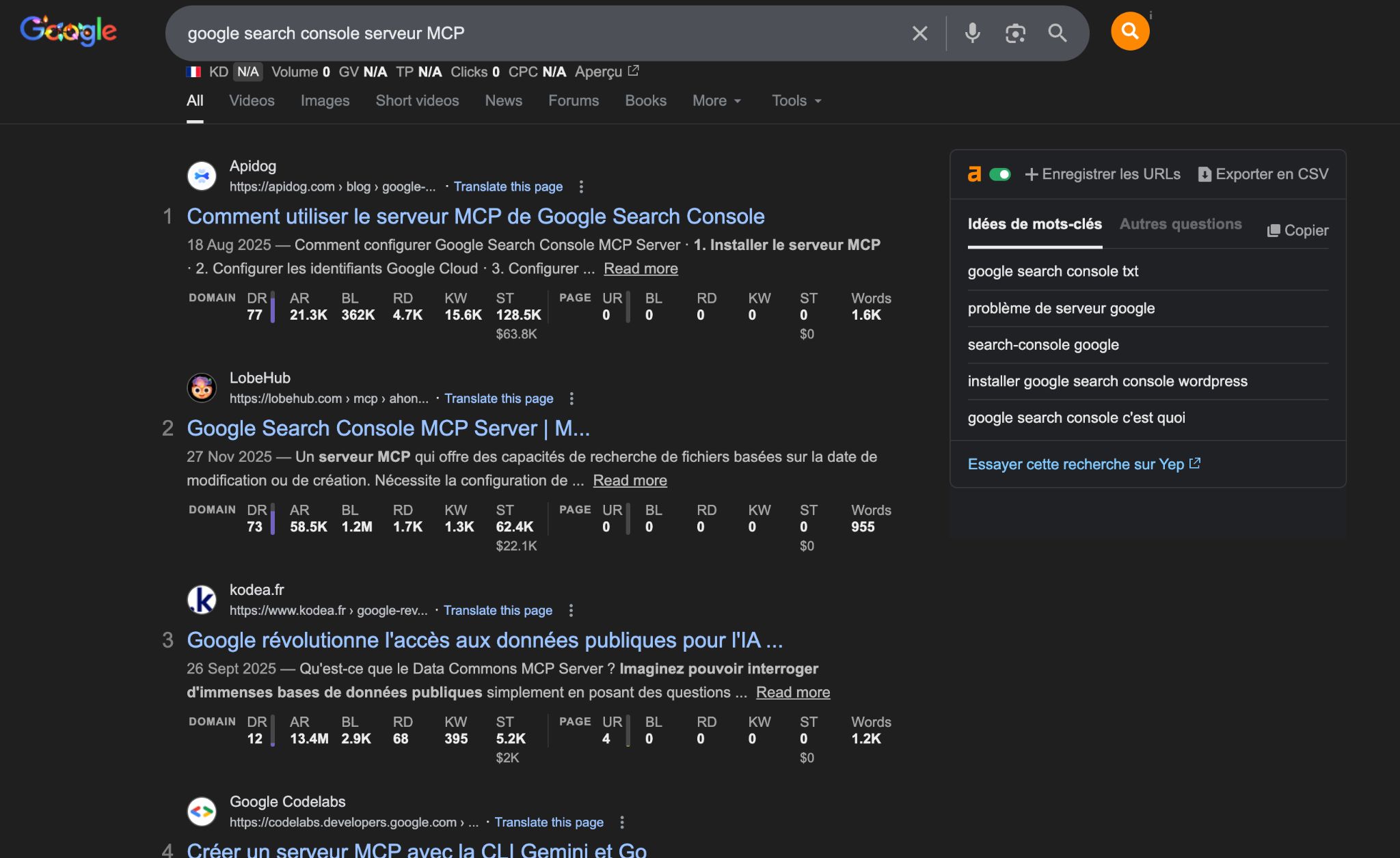 Les annotations sous les résultats de la SERP sont ajoutées par notre extension SEO