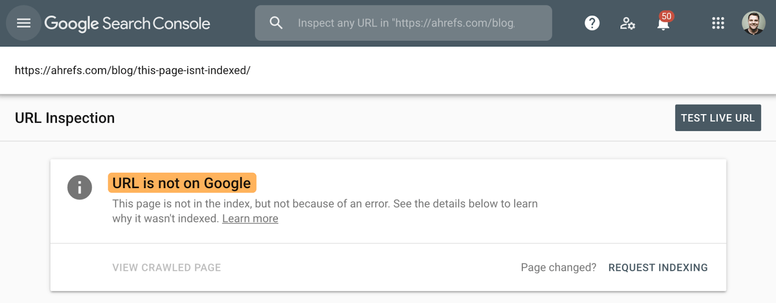 Pour vérifier le statut d’une URL en particulier, utilisez l’outil d’inspection d’URL.