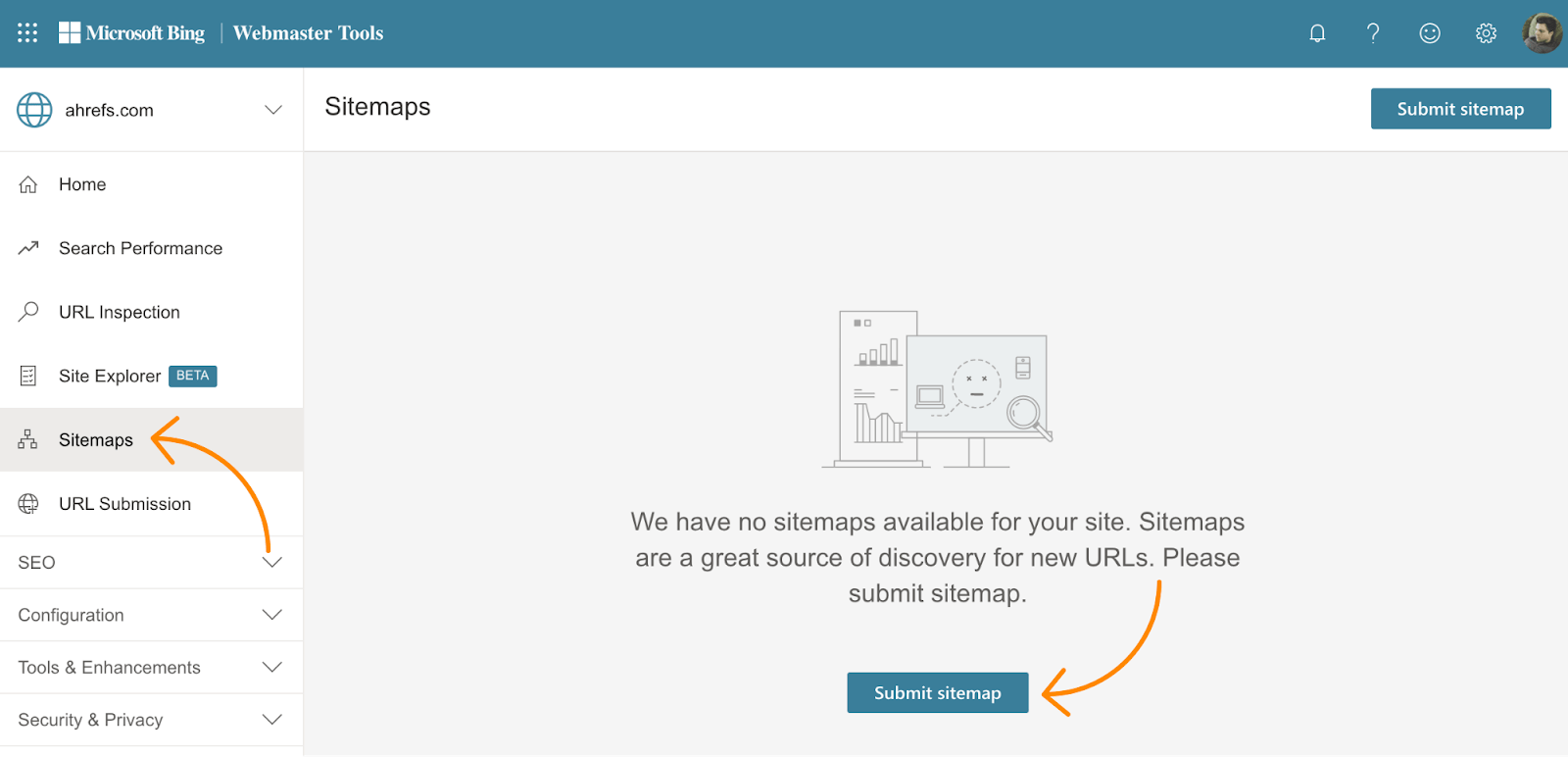 Connectez-vous à Bing Webmaster Tools, cliquez sur “sitemaps” dans le menu de gauche, collez l’URL de votre sitemap et cliquez sur “submit sitemap”.