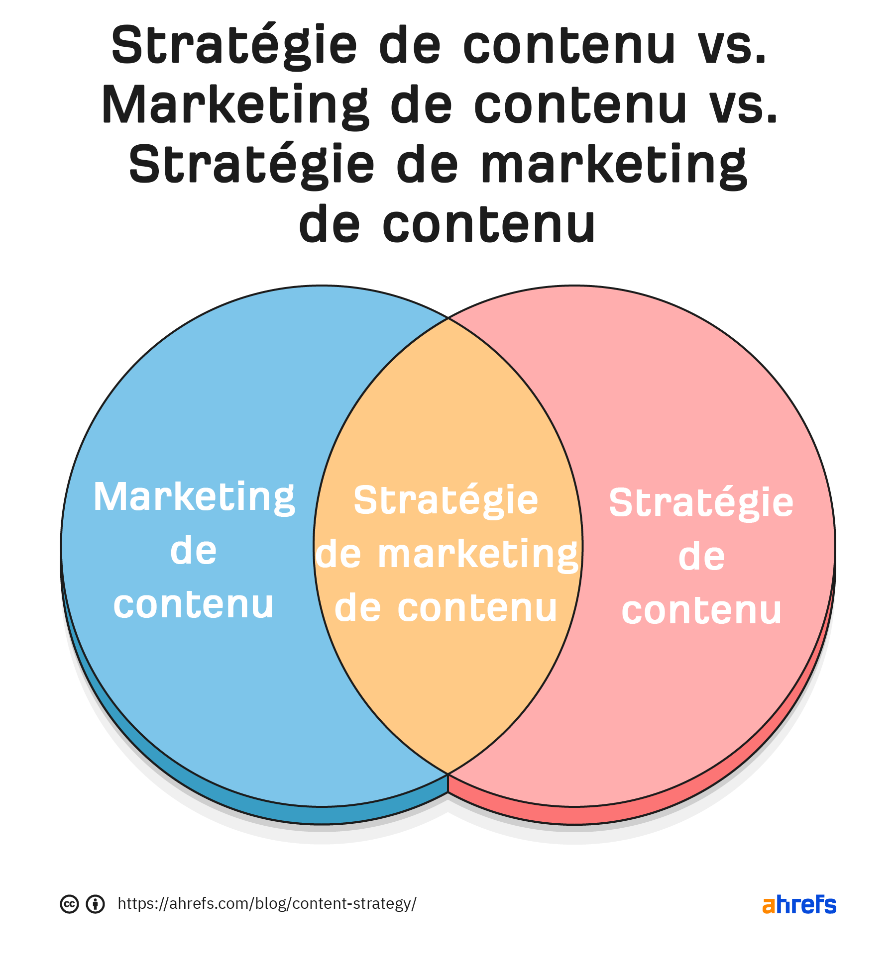 Pour rendre les choses encore moins simples, si on réalise un diagramme de Venn sur la stratégie et le marketing de contenu, l’intersection est votre stratégie de marketing de contenu.