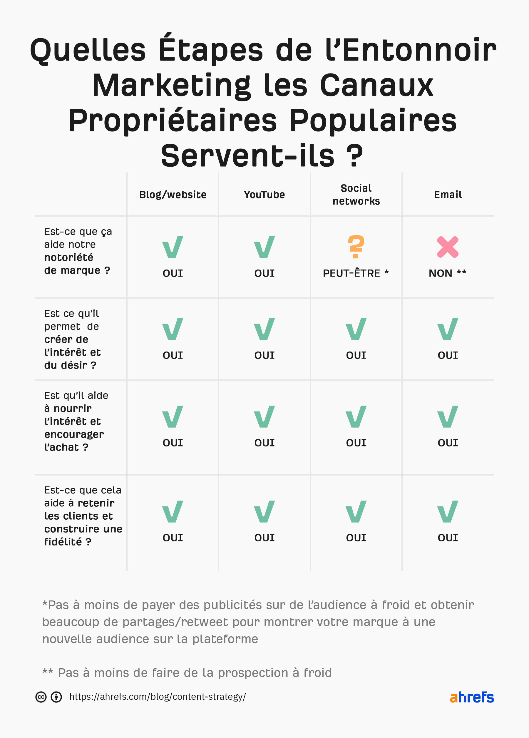 Toute bonne stratégie de contenu implique la création de contenu pour chaque étape du parcours client ; de la prise de conscience à la rétention de client. Mais tous les canaux marketing ne conviennent pas à toutes ces étapes.