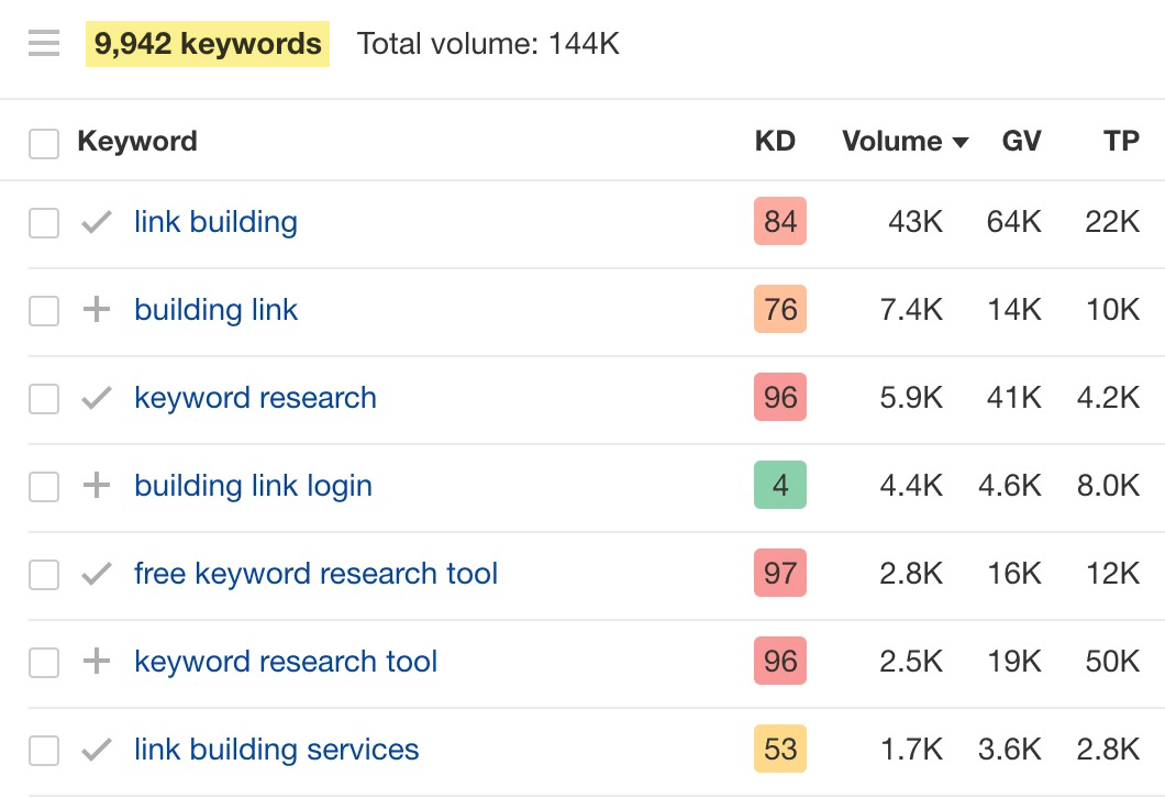 Vous verrez des centaines d’idées de mots-clés potentiels.