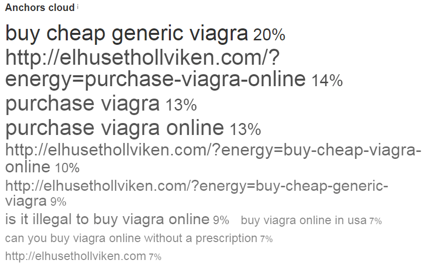 Compare that to the anchor cloud of a hacked site for a family-run lamp shop in Sweden: