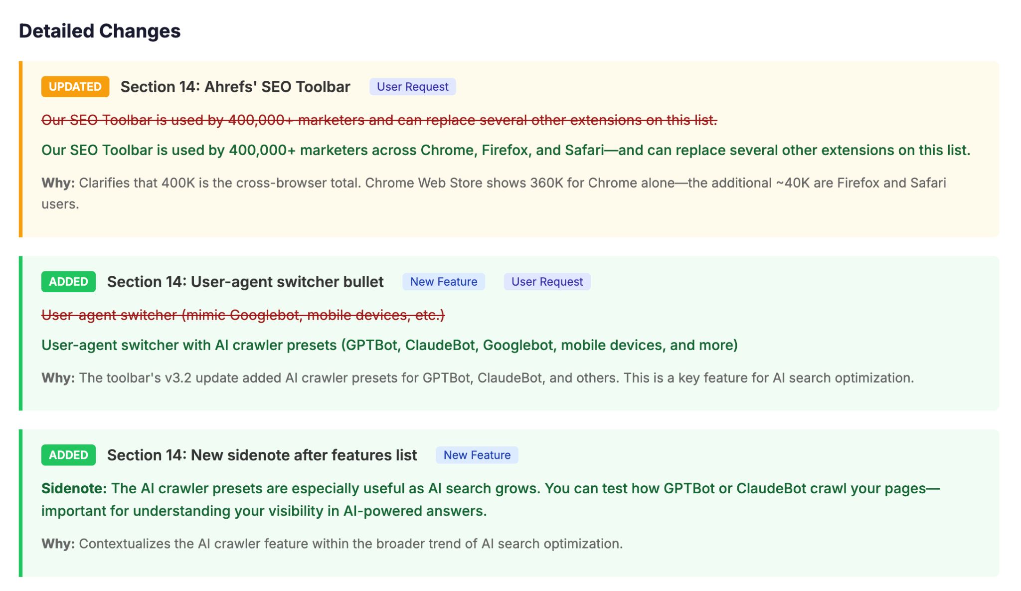 If you follow the Ahrefs blog, I’d wager that you haven’t noticed any major changes, despite the fact that we’ve been using generative AI to help with more and more of our work.