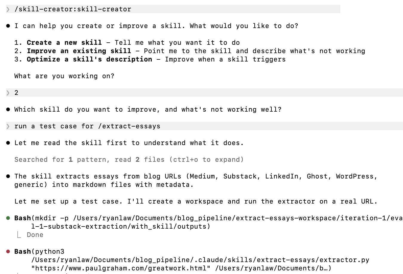 We’ve been using Anthropic’s skill-creator skill to test and improve our workflow. The skill tests each stage of the process, generating outlines, research primers and drafts both with and without the guidance provided in our custom skill files.