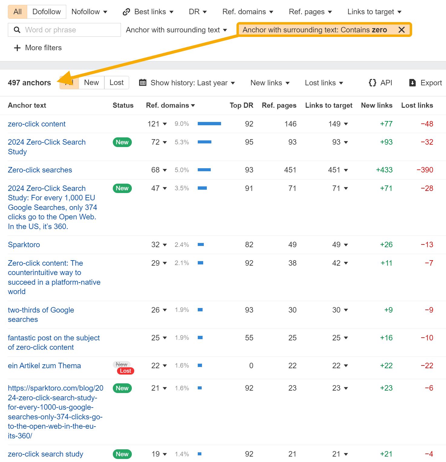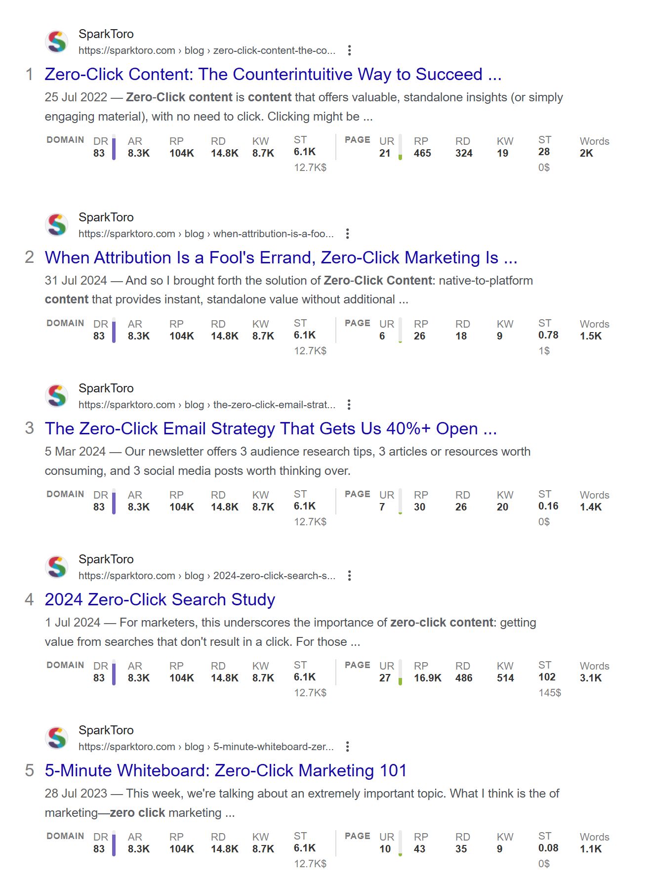 This is what happens when you run a site: search on SparkToro for “zero-click content”: