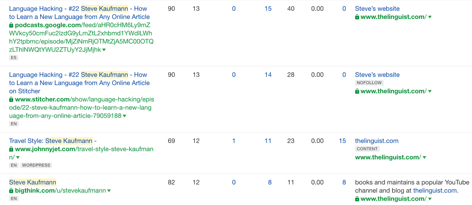An alternative way would be to look for someone in your industry who has been a guest on many podcasts. For example, if you sell a language app, then Steve Kaufmann is such a person.