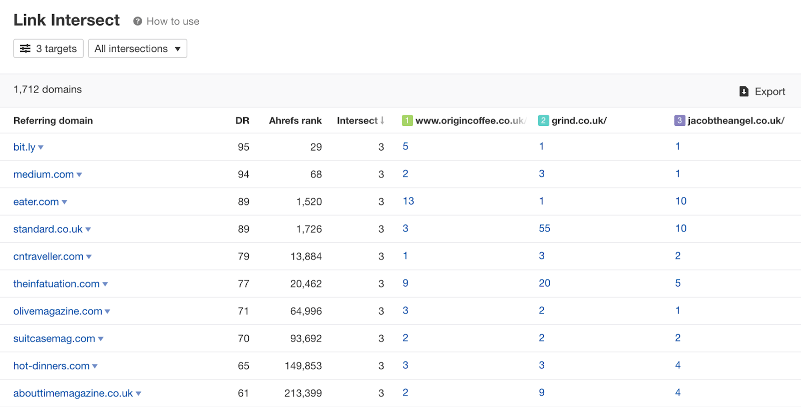 To do this, enter a few of your competitors’ homepages into Link Intersect.
