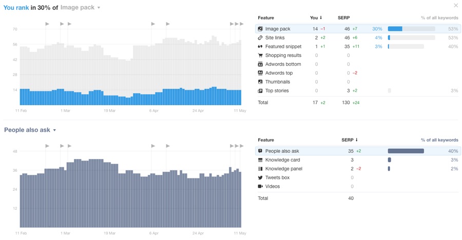 I can’t say that I’ve tried all rank trackers available on the market today, but should you find one with better reporting of SERP features, please do let me know about it.