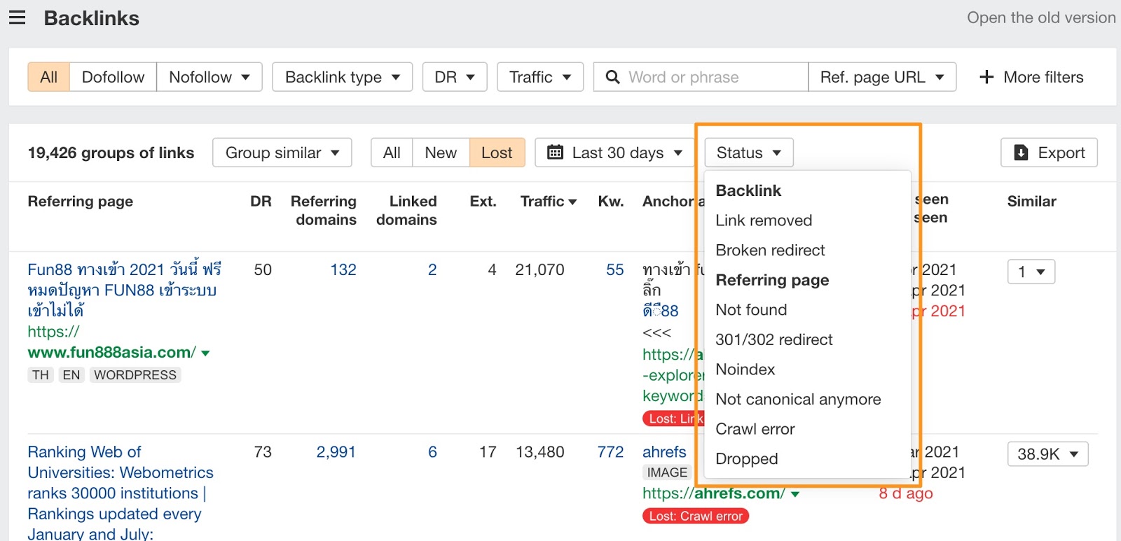 - Zoom in on lost backlinks depending on the reason why they were lost.
