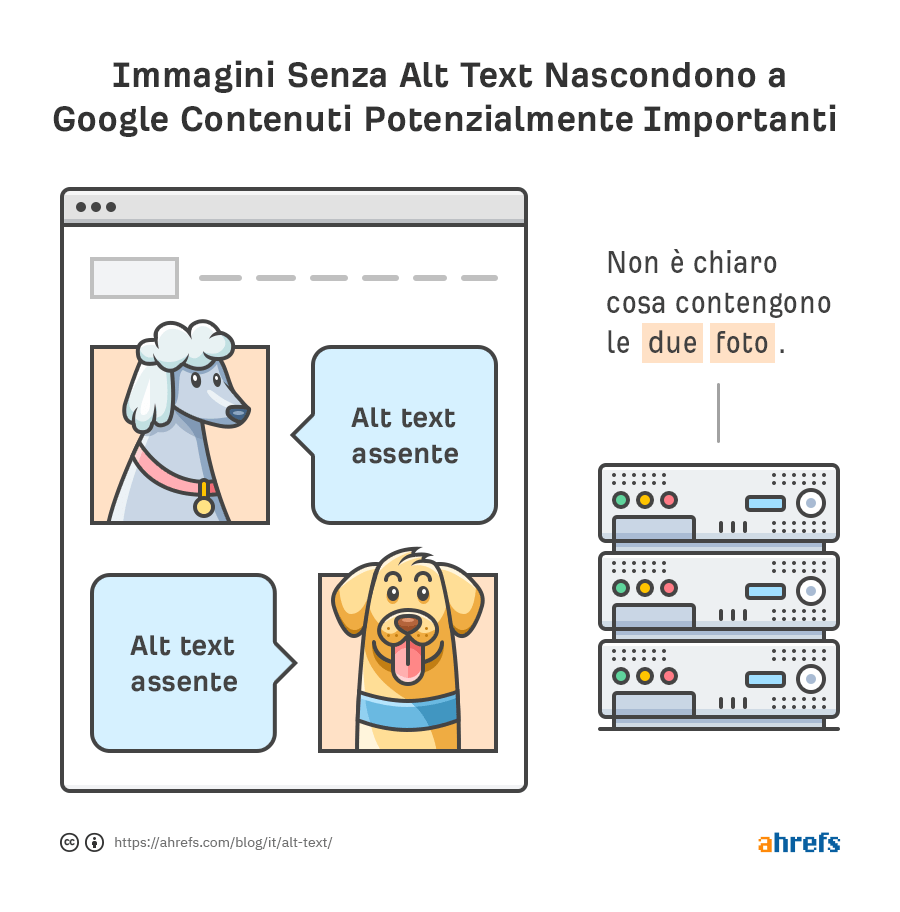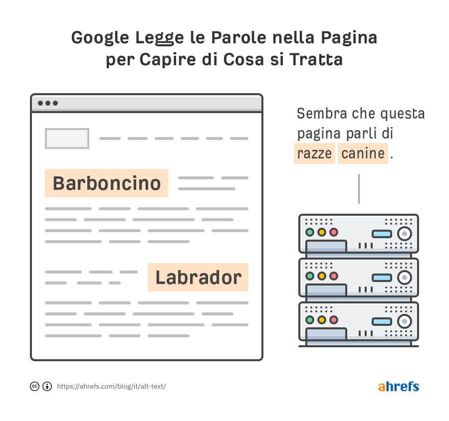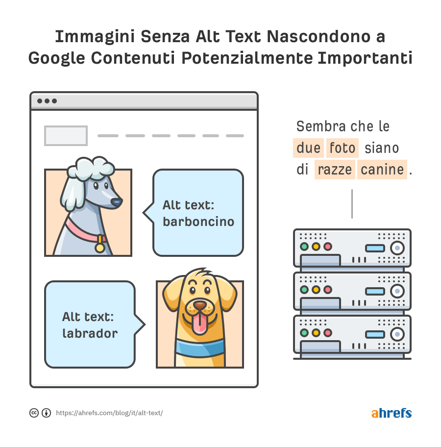 L’uso dell’alt text aiuta Google a capire queste immagini, e comporta una comprensione migliore della tua pagina e del suo contenuto.