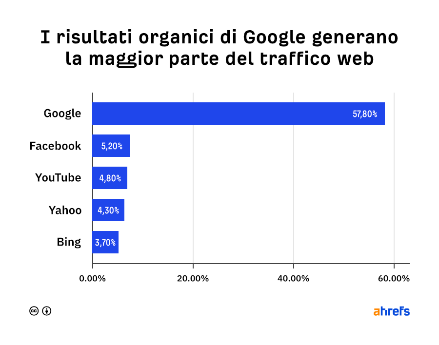 La maggior parte del traffico del web proviene dai risultati organici di Google.