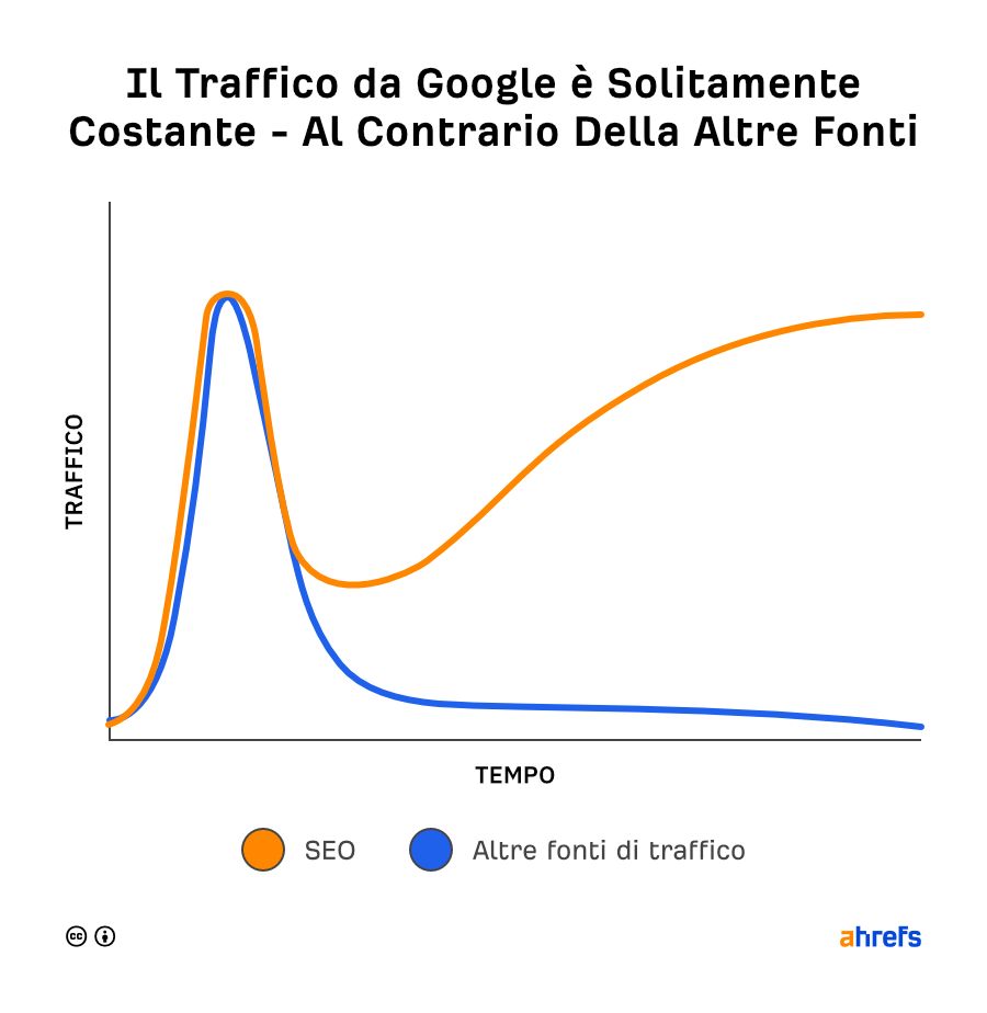 Posizionarsi sui motori di ricerca porta solitamente a ricevere traffico in maniera costante e passiva. Questo non è solitamente il caso per canali come i social media e l’email marketing, che sono caratterizzati spesso da picchi di traffico che svaniscono poi nel nulla.