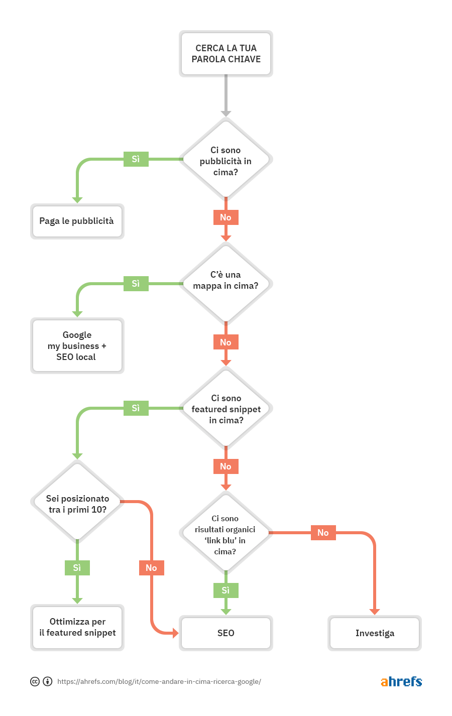 Tuttavia, le migliori pratiche e le ottimizzazioni sono raramente sufficienti per posizionarti al primo posto. Se hai fatto le cose più importanti e sei ancora lontano dal farti notare, segui questo diagramma di flusso: