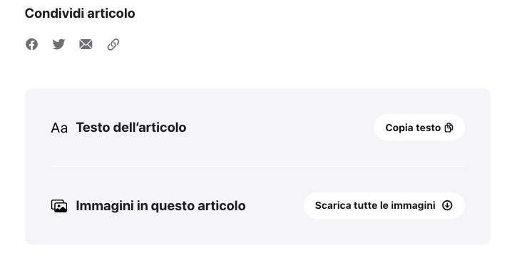 E alla fine del comunicato stampa sono disponibili anche ulteriori bottoni per la condivisione: