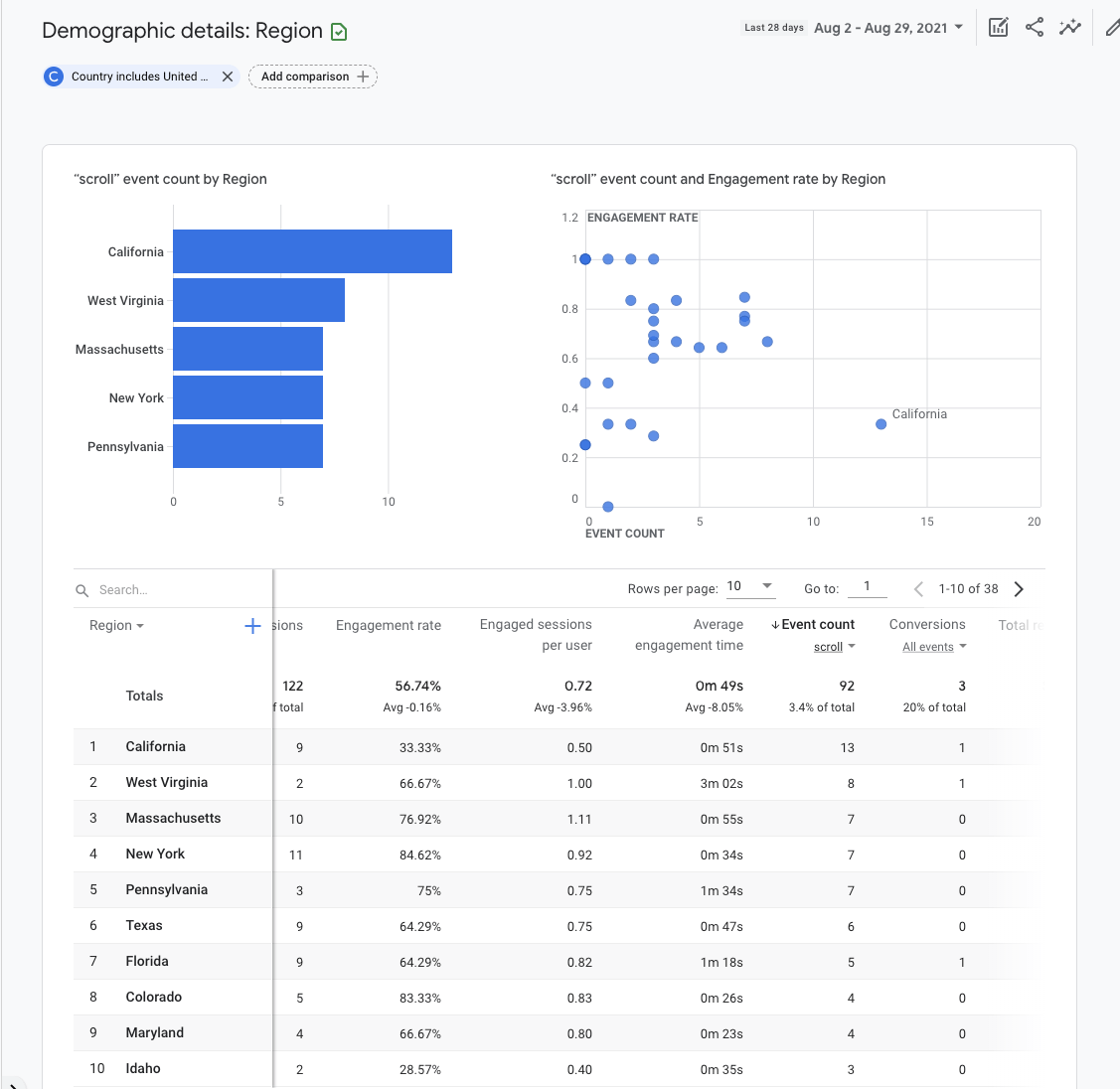 Ad esempio, se clicchi sul tasso di coinvolgimento o sulla durata media del coinvolgimento vedrai quanto i tuoi sforzi di marketing stanno avendo un impatto sulla fiducia degli utenti.