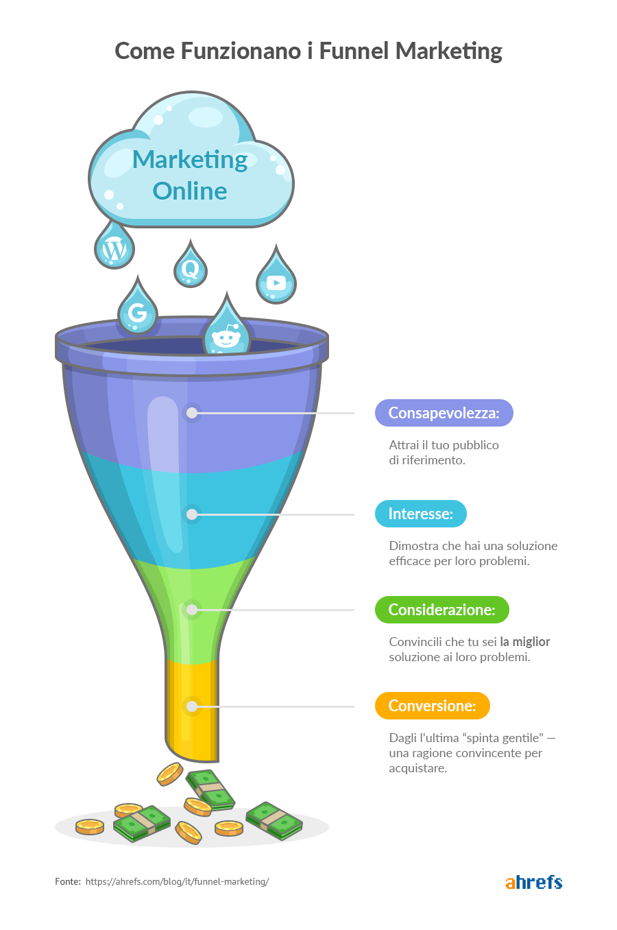 In ogni caso, almeno nella maggior parte delle volte, gli annunci a pagamento mandano le persone verso pagine che sono alla fine del tuo funnel di marketing, e che sono disegnate per convertire immediatamente, come ad esempio le landing page o le pagine prodotto. Inviando del traffico su questa pagine, protesti generare delle vendite, ma solo dalle persone che sono già pronte ad acquistare—perdendoti tutto il resto del traffico.