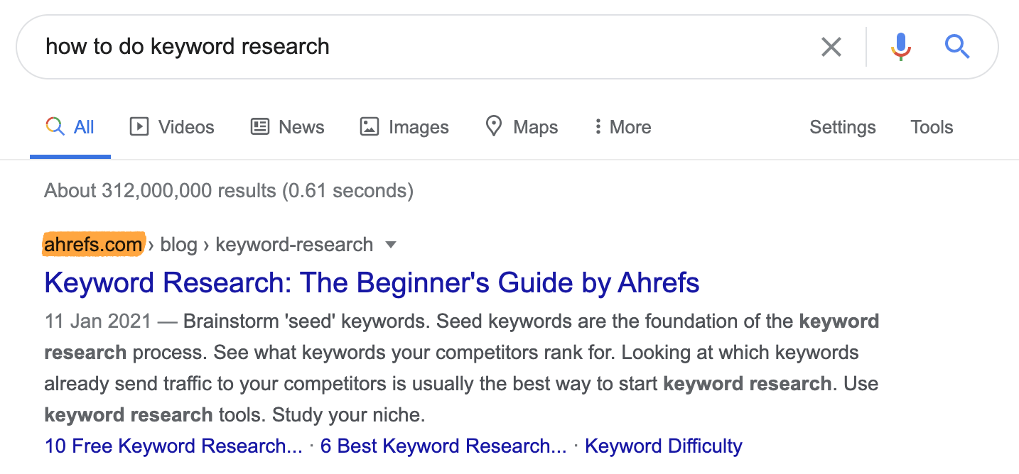 Proseguendo con l’esempio precedente, poniamo caso che qualcuno abbia scoperto la SEO, e ora stia cercando qualcosa di più specifico come “come fare una ricerca parole chiave”. Dato che abbiamo scritto un articolo a riguardo e siamo posizionati nella parte alta di Google, troveranno il nostro sito—di nuovo.