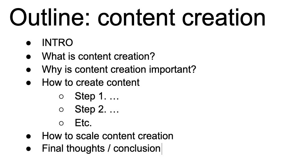 Ad ogni modo non ho solo preso spunto dagli articoli meglio posizionati. Ho anche aggiunto una sezione su come scalare i contenuti (la trovi qui sotto). Nessuno degli articoli meglio posizionati ne parlava, ma so per esperienza che molti creatori di contenuti affrontano questo problema. Mi sentivo quindi in grado di condividere alcune preziose informazioni a riguardo, in modo da differenziare anche il nostro articolo da tutti quelli già esistenti.