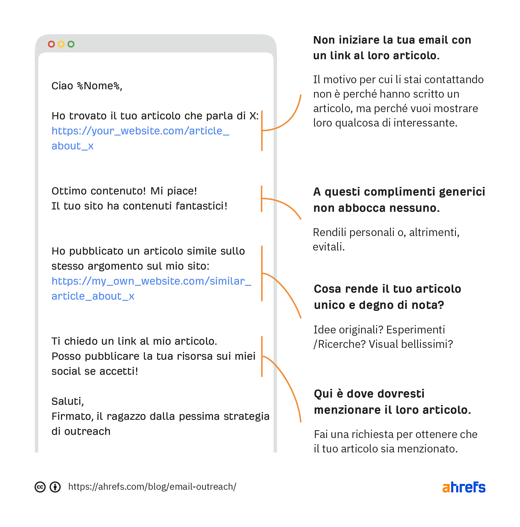 - Non esiste un template magico in grado di rendere una campagna di outreach un successo garantito. Il tuo template di outreach è buono solo se lo è anche il contenuto che proponi.