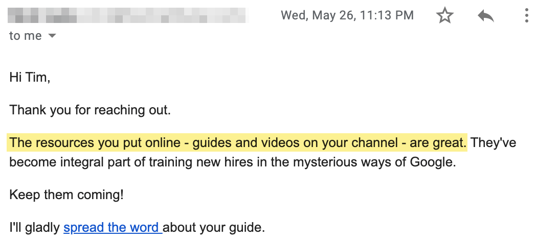 Quell’articolo è nato dalla mia frustrazione nel ricevere fastidiosi template di outreach. Mi facevano sentire a disagio sia per chi inviava quella email che per chi la riceveva. Ho quindi preso l’iniziativa, e offerto alcuni consigli su come far sì che le email non sembrassero SPAM ma una richiesta di contatto legittima.