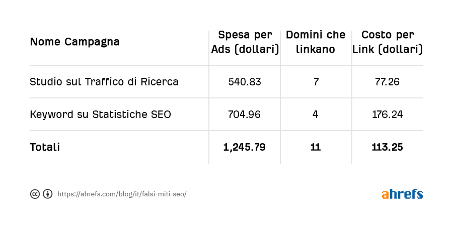 Non ci credi? Di recente abbiamo speso 1.246 dollari su Google ads con l’intenzione di creare dei link a uno dei nostri post del blog. Il risultato? Abbiamo ottenuto backlink da undici nuovi siti.