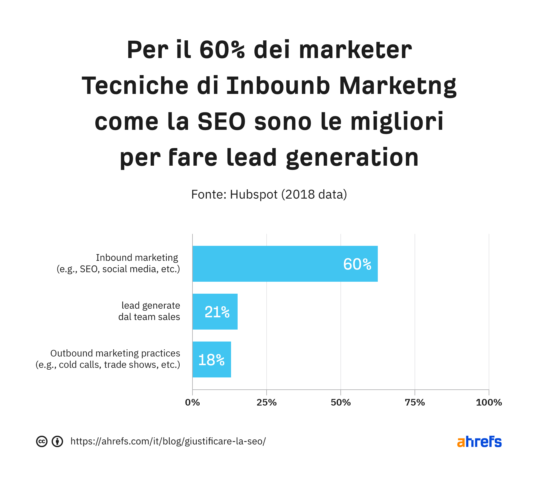 Puoi anche utilizzare la “social proof” a tuo vantaggio. Ad esempio, puoi mostrare come il 60% dei marketer sostenga che le pratiche di inbound marketing come la SEO costituiscano per loro la miglior fonte di lead: