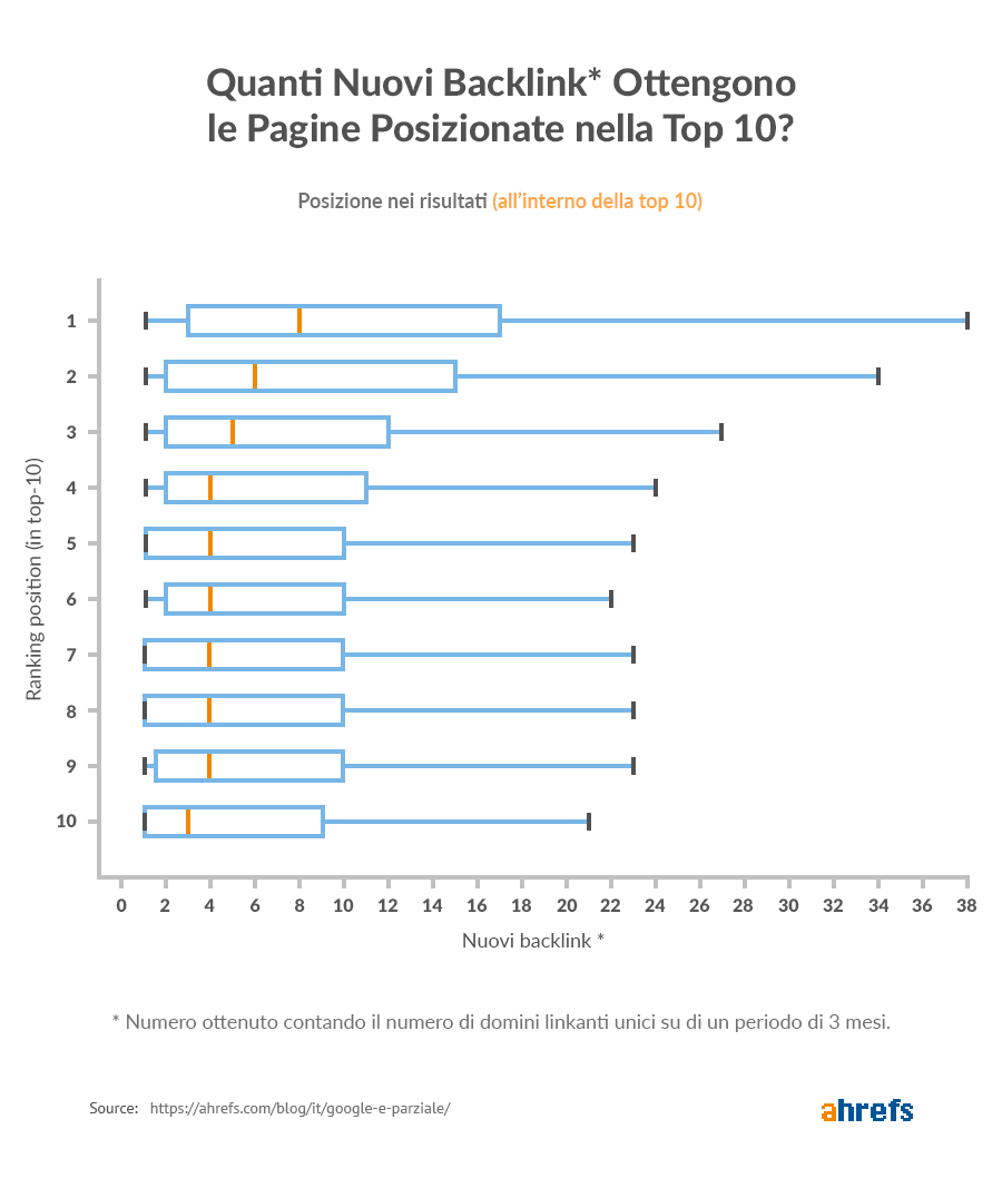 Avremmo anche potuto analizzare i dati relativi ai link o i link provenienti da altri siti. Ma anche in questo caso i dati sarebbero stati parziali, in quanto è normale per i siti meglio posizionati e con più contenuto ricevere anche un maggior numero di link. Abbiamo già dimostrato ciò nel nostro studio relativo alla crescita dei backlink.