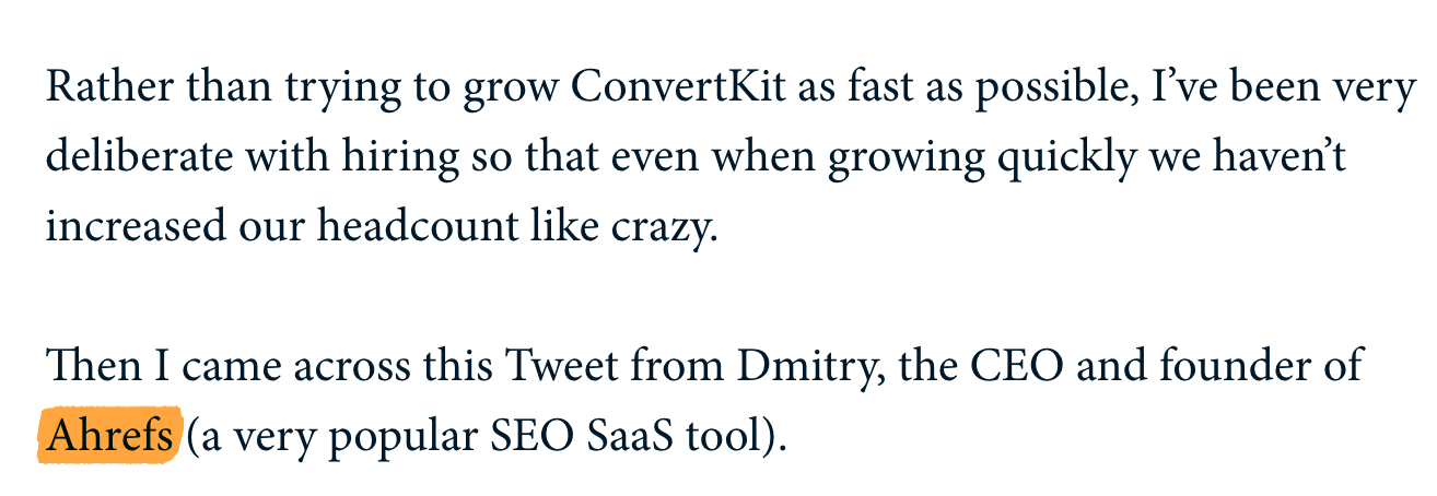 Se potessi riassumere la filosofia di marketing di Ahrefs in una frase, questa sarebbe “fai le cose in modo diverso”. Il banner, la nostra pagina di confronto, la home page—che sfrutta tattiche conosciute, ma che abbiamo adattato al nostro stile e fatto con una diversa esecuzione.