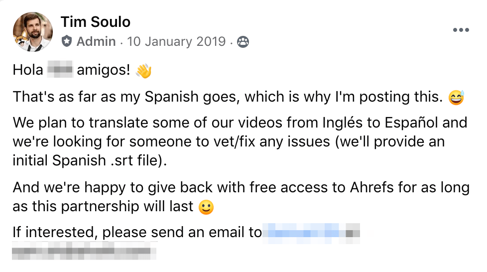 Ahrefs Insider è il nostro gruppo Facebook esclusivamente dedicato ai clienti. Nel momento in cui scriviamo, Gennaio 2021, il gruppo vanta circa 13.500 utenti attivi, con una media di 100 articoli al mese.