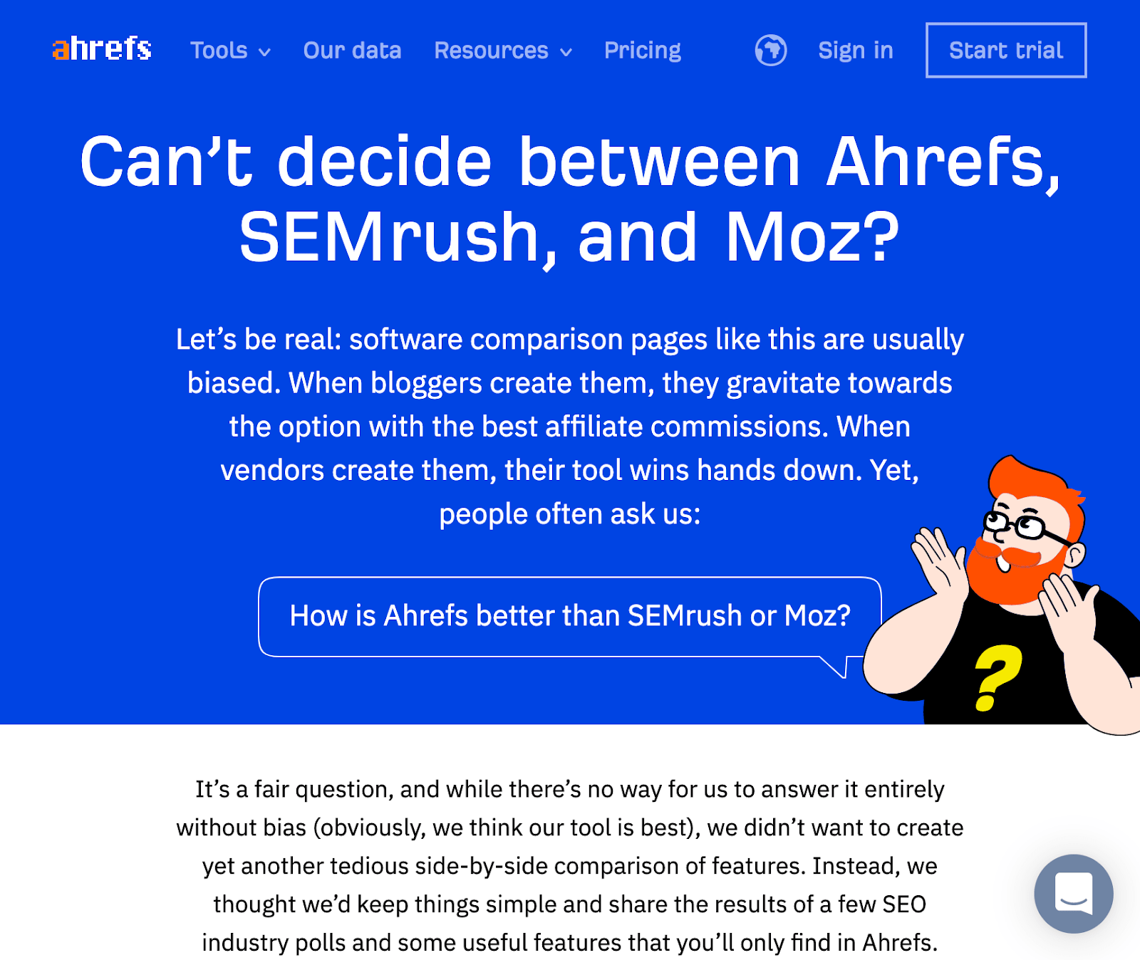 This is the best (and most ethical) software comparison page I’ve ever read: https://t.co/O70MTUR4w3 by @ahrefs