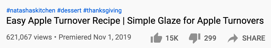 Ad esempio, la video ricetta della sfogliatella alle mele ottiene più di 6.400 visite mensili da Google, ed ha circa 621.000 visualizzazioni su Youtube.