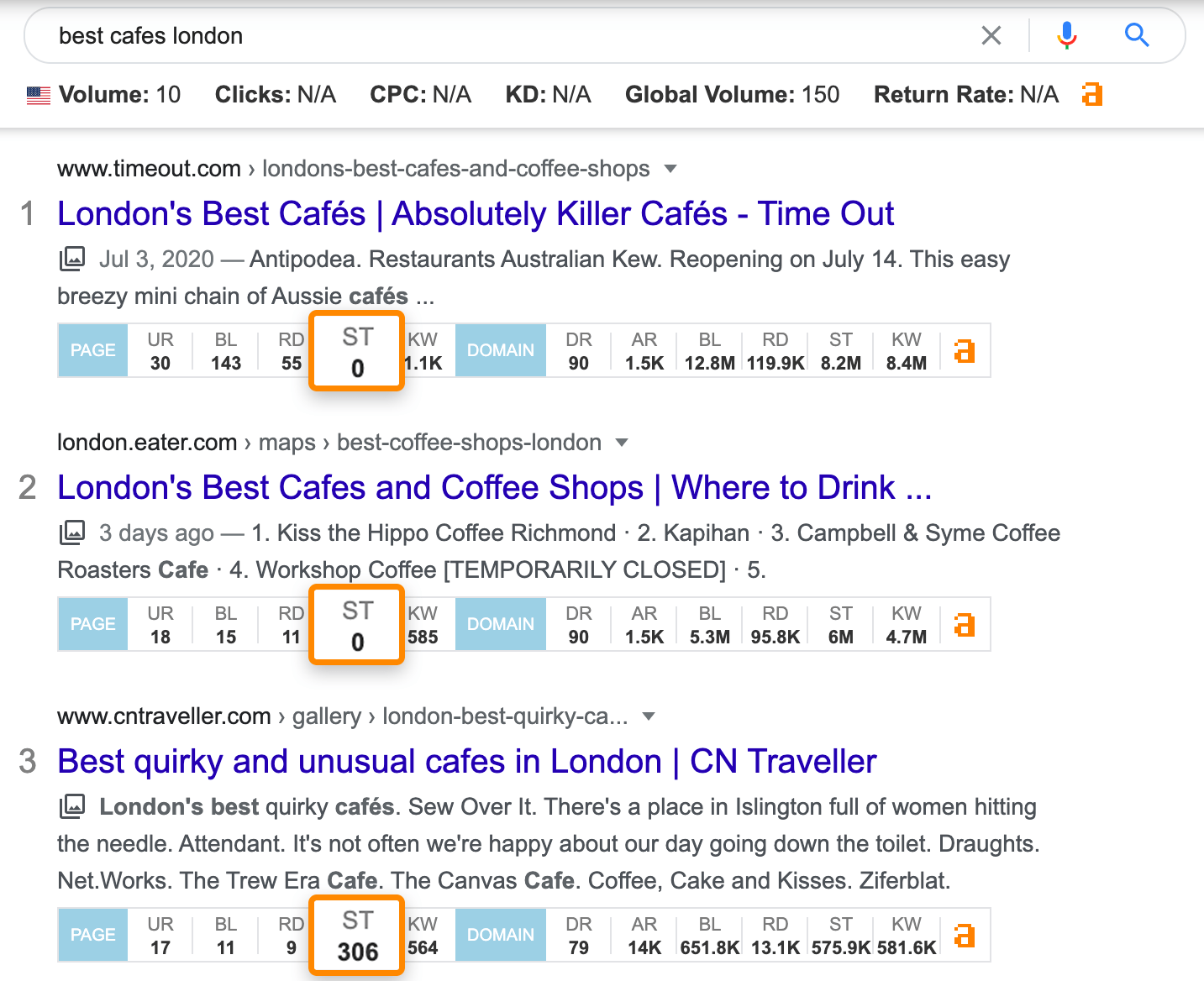 Se sei un utente di Ahrefs, puoi installare la Toolbar SEO di Ahrefs per vedere quali pagine all’interno dei risultati di ricerca ottengono più traffico, in modo da dargli priorità.