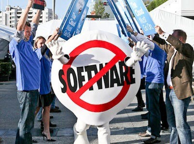 Salesforce si è portata ancora più avanti e ha creato una forte connessione fra prodotto e promozione (un’altra “P”). Salesforce ha “tradotto” l’architettura del proprio prodotto in una campagna promozionale chiamata “La fine del software”, che attaccava i modelli di distribuzione tradizionalmente utilizzati per i software.