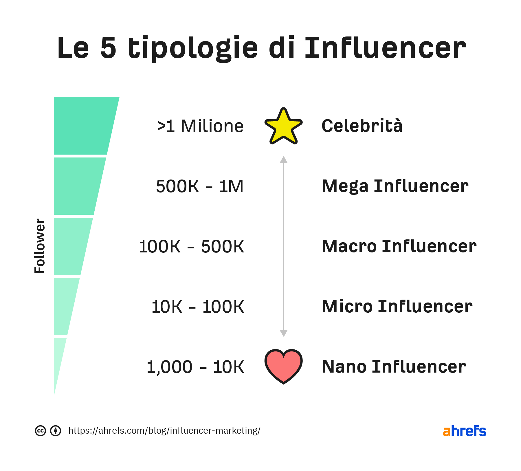 Comprendere quali sono le diverse tipologie di influencer può aiutarti a pianificare il tuo budget e la relativa strategia. Ecco la classificazione: